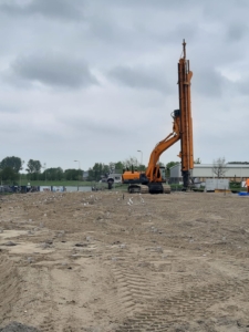 Vorige week is er flink wat zand aangebracht op het bouwterrein. Op dit moment zijn wij bezig met het aanbrengen van de verticale drainage. Om het stuiven van het zand tegen te gaan, rijdt er regelmatig een waterwagen over het terrein. De oplettende voorbijganger heeft vast en zeker de nieuw geplaatste borden gezien: op 18 mei a.s. wordt gestart met de aanleg van de brug en wordt de Grietpolderweg afgesloten. Wij hopen spoedig het resultaat van de brug te kunnen laten zien.