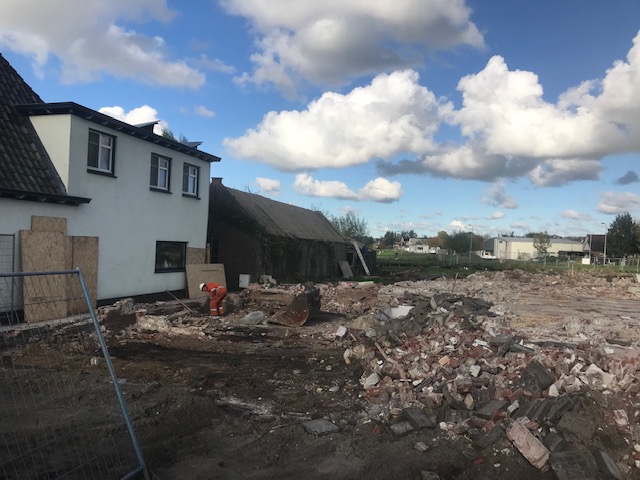 Een nieuwe mijlpaal voor het Dorpshart van Leimuiden is bereikt: het laatste pand is afgebroken. Tijdens de sloop is veel extra asbest aangetroffen. Hierdoor heeft het sloopwerk langer geduurd dan gepland. Het overgebleven puin wordt verder opgeruimd en er worden voorbereidingen getroffen voor de volgende fase, de bodemsanering. De bouwketen moeten hiervoor worden verplaatst op het terrein. Tevens wordt er een extra afscheiding tussen de vervuilde grond en de rest van het terrein geplaatst. De verkoop loopt voorspoedig er zijn inmiddels 7 appartementen en 1 eengezinswoning verkocht. Daarnaast staan het laatste appartement en nog eens 4 eengezinswoningen onder optie.