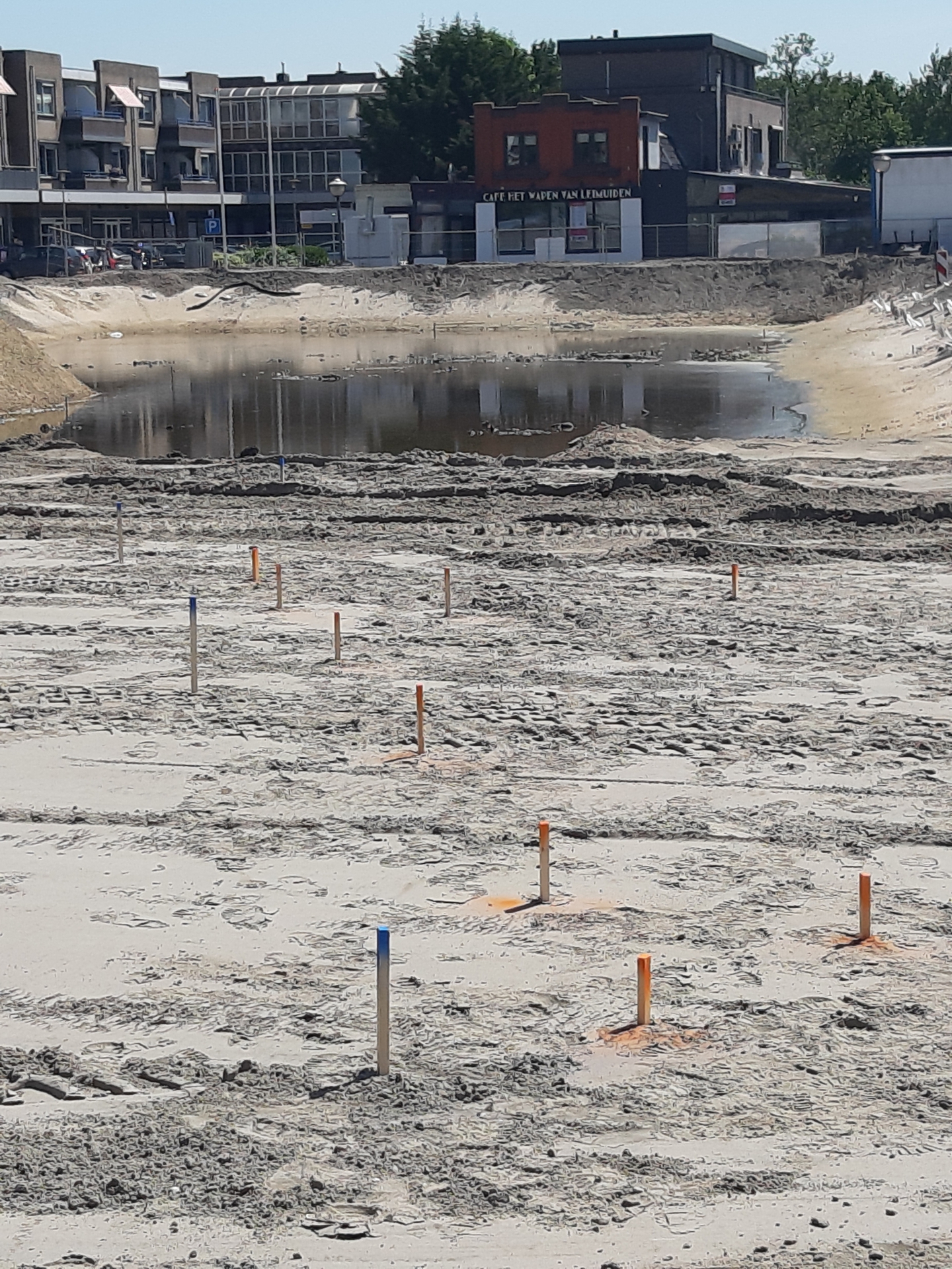 De afgelopen tijd zijn de voorbereidingen voor de brug die straks toegang biedt aan de Dorpshaven in Leimuiden uitgevoerd. Hiervoor is een stuk grond is gesaneerd, het asfalt is (gedeeltelijk) opgebroken en een oude duiker is uitgegraven en afgevoerd. Tegelijkertijd is op het terrein weer een laag zand aangebracht als voorbelasting. Het terrein kan nu verder gaan zetten, ook wel inklinken genoemd. Deze zetting moet plaatsvinden om te voorkomen dat de grond in de toekomst gaat zakken.