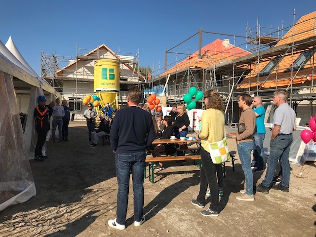 Na mist kwam zonneschijn! Vanaf 14.30 uur was de zonovergoten bouwplaats geopend voor de toekomstige bewoners van de 27 woningen van het project Dorpshart in Leimuiden. De kopers kregen de mogelijkheid de bouwplaats op te gaan en hun eigen woning van binnen te bezichtigen. Hierna was er, onder het genot van een hapje en een drankje, gelegenheid om kennis te maken met de toekomstige buren.